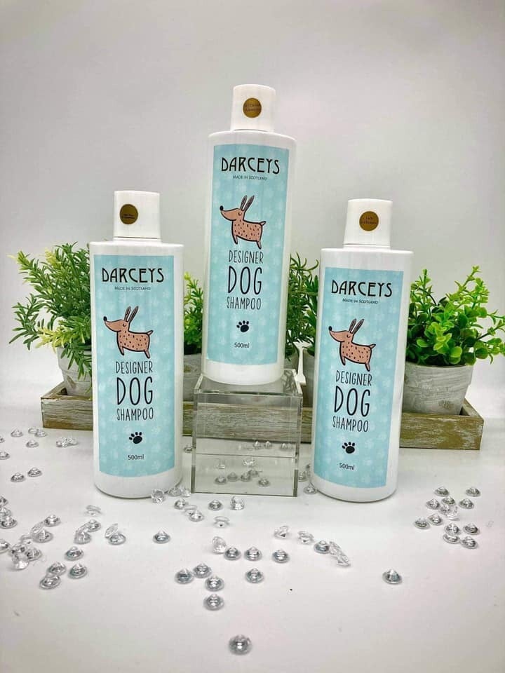 Designer Dog Shampoo for our foreer friends! Carefully created pet friendly shampoo which will let your pet enjoy the luxury of a Darceys soft and scented bath or shower.